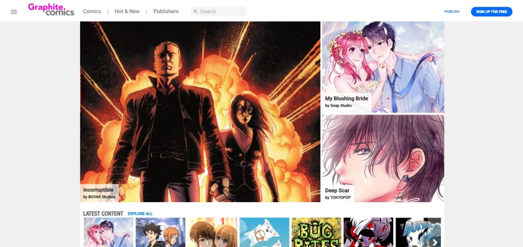 Graphite Comics, a fairly new platform, has an array of comics to read—from Western comics and graphic novels to manga and webtoons. Comics from well known publishers, such as Dark Horse Comics and BOOM! Studios, can be found on this platform. Graphite Comics has a selection of webtoons to read from and a few of those webtoons may seem familiar to some avid webtoons readers as a number of them are also published on WEBTOON CANVAS (the self-publishing side of the WEBTOON platform). Most of the comics seem to be free (sometimes with ads) but some comic chapters are only viewable via premium membership, which is $2.99/month or $20/year. That’s quite inexpensive, especially when you compare it to the cost spent on other webtoon platforms, and may be worth checking out.