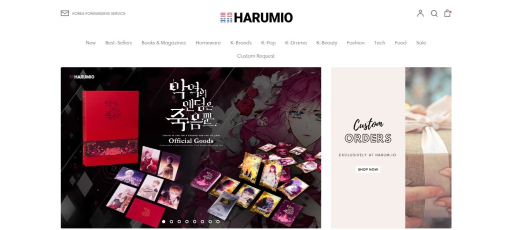 Harumio is forwarding service. Basically a company that works kind of like a third party provider, or a personal shopper. Harum.io carries lots of products ranging from apparel and kitchenware to books and food, and they are shipped straight from Korea. Likely due to a high demand, they sell a lot of webtoon merch.