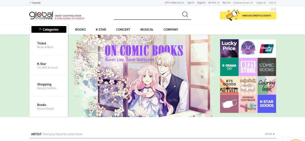 Interpark is a Korean ecommerce marketplace, similar to Ebay or Amazon. Global Interpark is simply the international platform. They carry a lot of Korean goodies, from K-pop albums and K-pop concert tickets to fashion apparel and webtoon books, all shipped straight from Korea. This also means the cost of shipping is a bit high, but perhaps well worth it for the limited edition volumes.